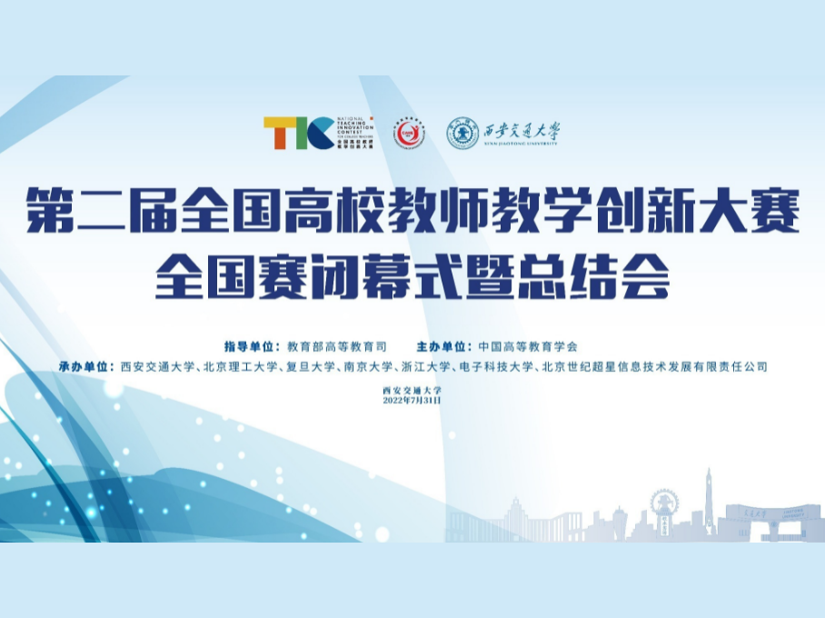 各省(区、市)赛主办单位、各赛区牵头单位、有关高校: 为深入学习贯彻习近平总书记关于新时代教师队伍建设改革的重要指示,聚焦新时代高校教师教学发展与创新人才培养,在教育部高等教育司指导下,中国高等教育学会举办了全国高校教师教学创新大赛。第二届大赛全国赛现场赛于 7 月 26 一 31 日在西安举行,并同期于 7 月 31 日举办第二届全国高校教师教学创新大赛全国赛闭幕式暨总结会。